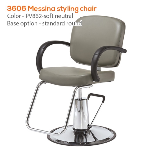 The Pibbs 3606 Messina Hydraulic Styling Chair is Made in the USA by Pibbs Industries and is available in 40 different Fabric Colors. Since it is made in the USA this is an extremely high quality salon chair and comes with a 3 year warranty on the Hydraulic Pump. This styling chair by Pibbs is made with black molded urethane arms that are very durable and stylish. It also has a very wide seat that will fit all of your larger customers. If you are looking for a high-quality styling chair that is great looking at an affordable price this is the chair!