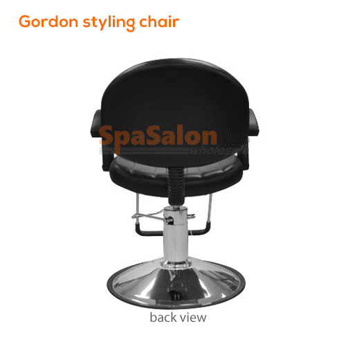 The Gordon Styling Chair is an ideal and contemporary option that will flatter salon décor. The clean lines and the curve of the arms help to make it a unique design. Attributes include u-shaped chrome footrest, chrome hydraulic base, chrome lever for easy adjusting, soft back and seat cushions for comfort, and rich black upholstery.
