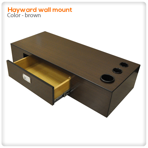 The Hayward Wall Mount Station is a stylish wood veneer wall mount station that comes equipped with three handy chrome appliance holders. The Amos mounts right to the wall for convenience and easy work-flow.