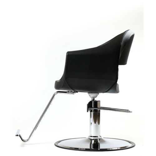 The Milla Styling Chair is uniquely elegant. The side view displays an angular curve along the back with precision stitching. This hair styling chair enhances any salon décor with its sleek high quality professional grade upholstery. Comes complete with a polished chrome hydraulic base, footrest, and lever. The Milla is a wonderful option for high-end salons or salons that have a European décor.