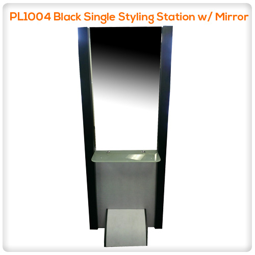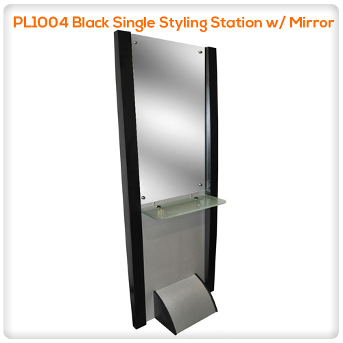 PL1004 Black Single Styling Station w/ Mirror