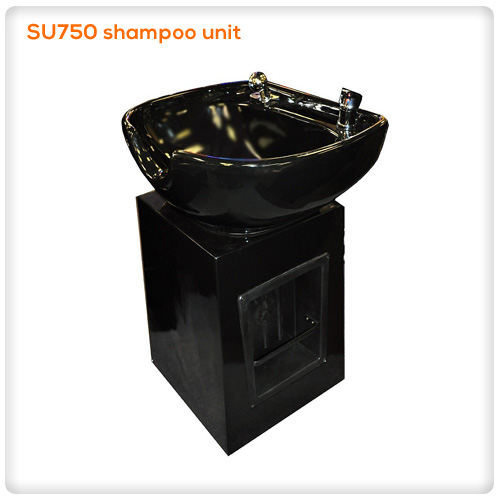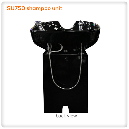 Beautiful freestanding ceramic shampoo bowls that has a built in shelves on each side for storage of shampoo and conditioner, also serve as easy access connection for plumbing. Includes sprayhose, faucet, and drain basket. Can be used to compliment our Shampoo Chairs.