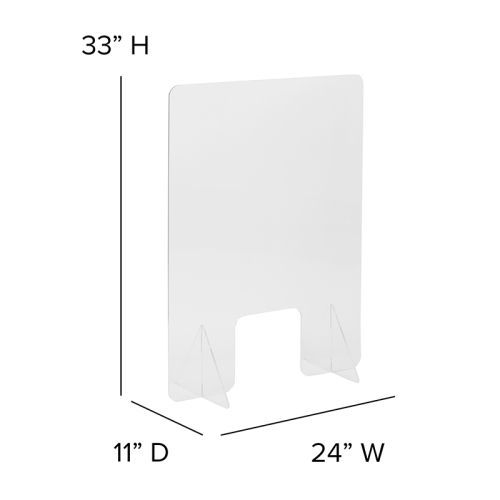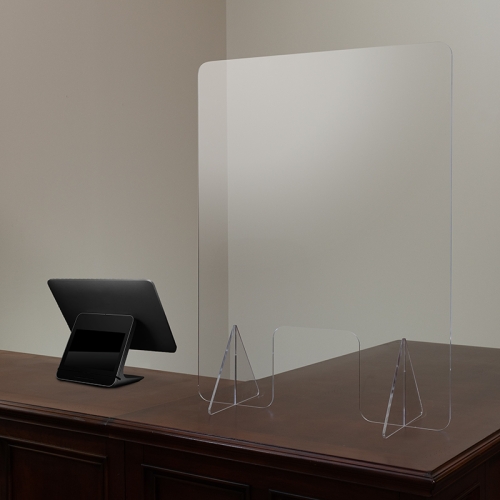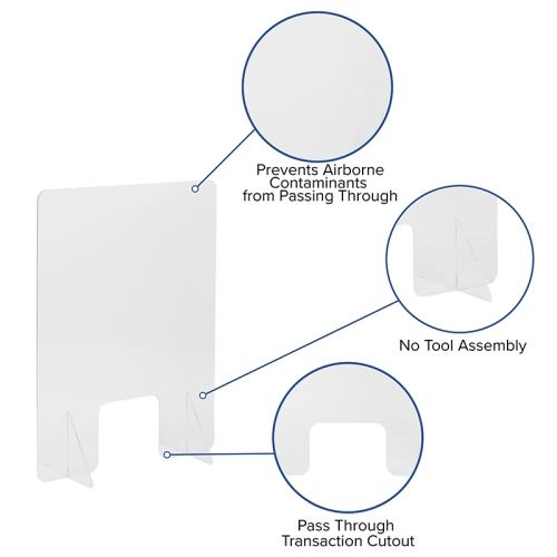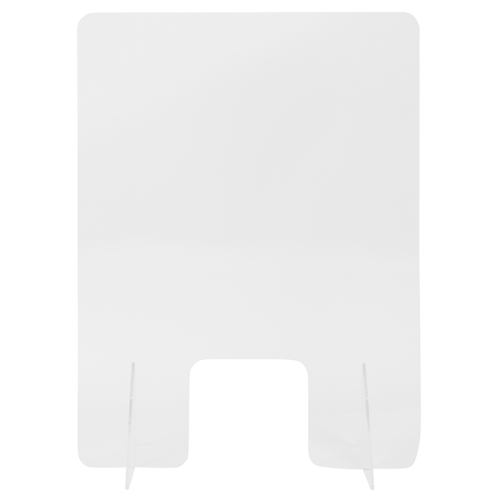 Protect employees who come into contact with customers on a daily basis from bacteria and viruses with this clear acrylic register shield. The sneeze guard protects both employee and customer by preventing the transmission of droplets. A 10.625"W x 8"H opening allows card and cash transactions to be passed through for processing.