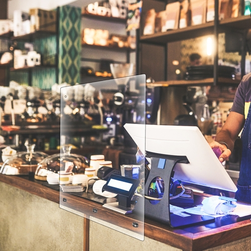 Hanging partitions are ideal for use in a store checkout lane, POS register area or customer service counter. The transparent design allows you to have more personal interaction with clients and customers to help them feel welcome. Don't let COVID or any other airborne disease keep you from opening your doors, get a protective sneeze guard today.
