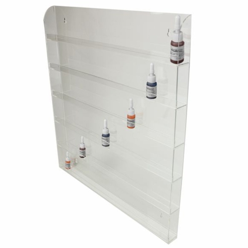 AYC's Wall Mount Acrylic Tattoo Ink Rack is the perfect way to display and organize tattoo shops. Display ink color collections in this acrylic, transparent and stylish wall mounted display organizer with 6 shelves. This simple yet unique Acrylic rack can hold approximately 96 ink bottles depending on the bottle size. You can easily mount it on the wall or use it as a stand alone rack.