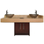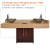 Mahogany & terra roca laminate combination equipped with 2 modern sink faucets and 2 glass bowls