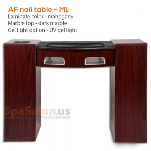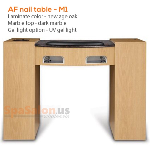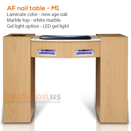 - Two 36W UV gel light with 3 minute timer, light switch for UV light, door opens 170 degrees, marble top 23 3/16" x 17"