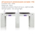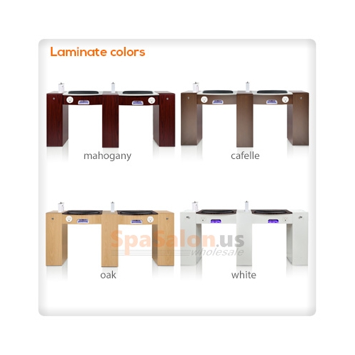 - 4 predrilled holes (located on left and right sides of tabletop) to insert manicure lamp, drill hanger, or other devices