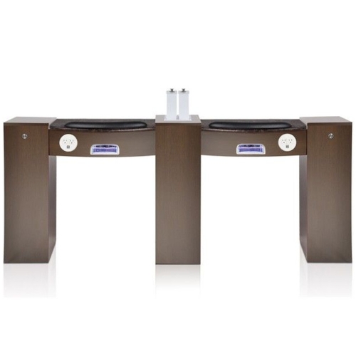 The SaniSmart IMC Double Nail Table Dual Vented is a beautiful, yet functional double manicure table with an innovative venting system and many options for customizing your workstations. This table helps filter your salon's air to improve the overall health of your business. It comes fitted with a piping system that connects directly to your salon's ventilation to remove toxins and dust from your salon's atmosphere, keeping you and your customers protected from harmful particles and allergens. The innovative “pop-up” vents on the tabletop light up your workstations with bright LED lighting. When you don’t need the venting system, simply push the vents back down to hide them from view and gain the extra tabletop space. Each table is custom-made with your choice of Mahogany, Oak or Cafelle laminates (Special laminate colors available upon request). You can customize further by choosing your desired marble color, furniture style, light options, and more. For quality assurance, each of our manicure tables is ETL-Certified and designed and assembled here in the USA.