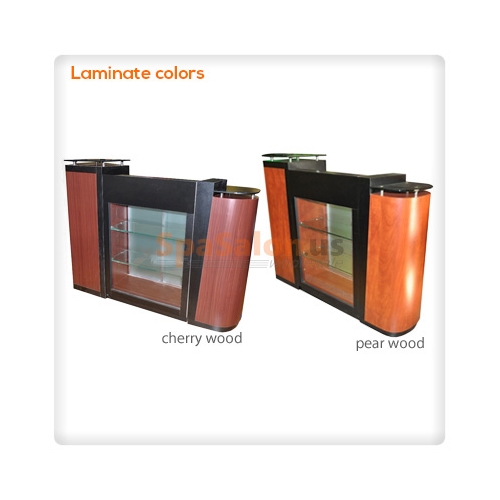Our elegant Reception Desk also features a glassed in display area in the front of your desk for you to show off your
