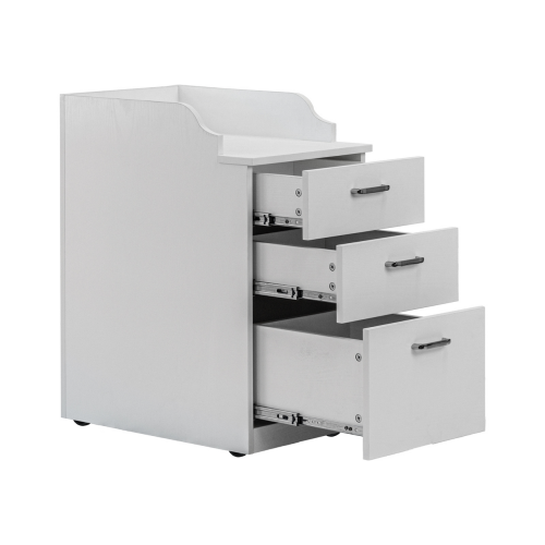 Streamline your salon setup with the Avignon 3-Drawer Pedicart, a sophisticated, compact storage solution crafted from durable wood and finished in a stylish white. Perfect for professionals looking to organize tools and products efficiently.