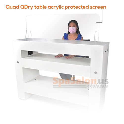 - Sturdy, clear screen for Quad Quick Dry Table to protect clients from coughs, sneezes, and respiratory droplets