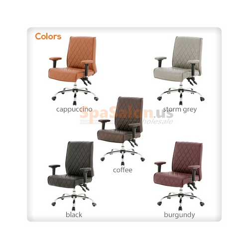 The Alice Technician Stool is a nice and comfortable stool to have in any salon. Its finished with polished chrome and upholstered with soft acetone resistant vinyl for durability. Colors are available in cappuccino or burgundy.