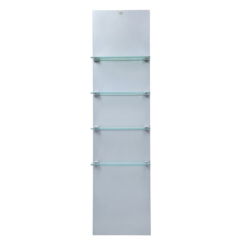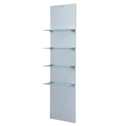 The Vina wall mounted Display shelf is made to function to any wall space and also made to fit next to styling units with a simple but elegant Design with frosted glass shelving to bring the viewers attention straight to the products added to each shelve.