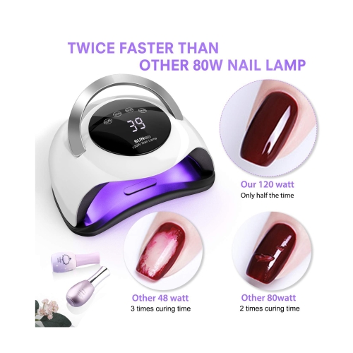 The nail lamp cures gel nails with flexible working time, 10s is a super fast mode designed to quick done your nails work before rush out. 30s & 60s modes are for regular gel polish. 99s is for painless and low heat mode. The nail machine is a perfect device for both salon pros and home users.