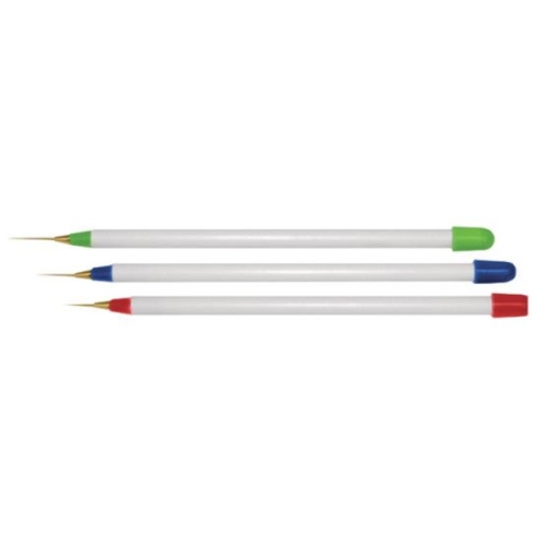 Create beautiful nail art with this 3 piece nail art striping set. Each set includes a short, medium and long brush and features synthetic bristles.