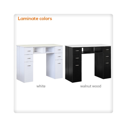 Includes: Empress SE spa pedicure chair, White granite top nail table, Monaco customer chair, Cookie Technician salon stool, Pedicure stool