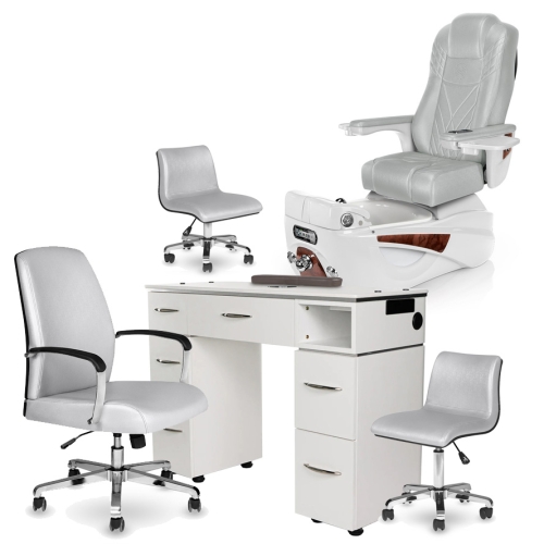 Includes: LX pedicure chair - M1, LX manicure nail table - M2, LX customer chair - M2, LX tech stool - M3 (pedicure & manicure)
