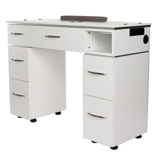 Moden Manicure Station is compliments the full Signature Moden salon furniture line. Has six (6) drawers to hold manicure service supplies. Some assembly required.