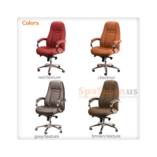 - Chair available in Light Grey, Dark Grey, Brown, and Red colors
