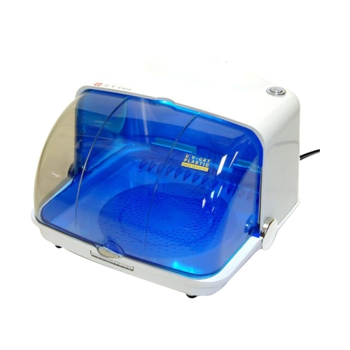 Compact germicidal sanitizer w/ ultraviolet lamp - sanitizes implements used for salon & spa applications. Supplied w/ long lasting UV bulb and easy access tray.