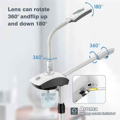 The latest generation of 2-in-1 standing facial steamer with 3X magnifying lamp