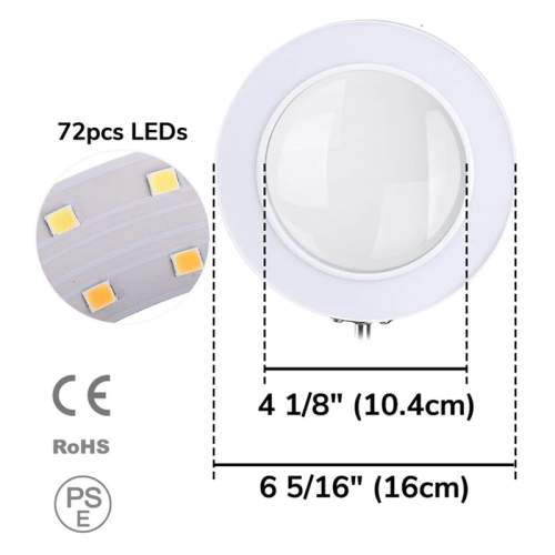 • 3000 to 6500k energy saving LED lamp with 72 pcs light beads features 3 color modes including cold, natural & warm white and 10-level brightness adjustment