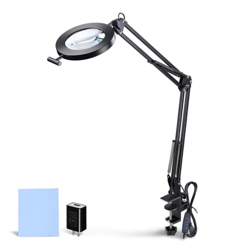 Yescom Black Clamp-On Illuminated 5x Magnifier Lamp with T-shaded Handle is ideal for Reading, Salon Hobbyists, Beauticians, Circuit Board Inspection or just as a Vision Aid. It is convenient to use as its lens head can rotate left and right with 360° and flip up and down 270°. With the desk clip, you can easy assemble it in any position.