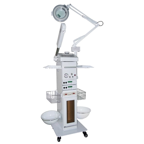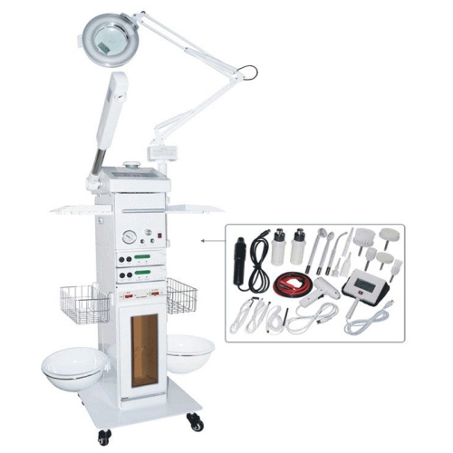 An 11-function machine for an upgraded facial and skin treatment package. Tower style for the ultimate in space saving design, with rolling wheels for easy maneuverability and high-quality construction. Unit comes with all necessary attachments for each function(see image). All COMPONENTS are DETACHABLE and WORK INDEPENDENTLY, making it super easy to clean or repair, without losing the entire machine.