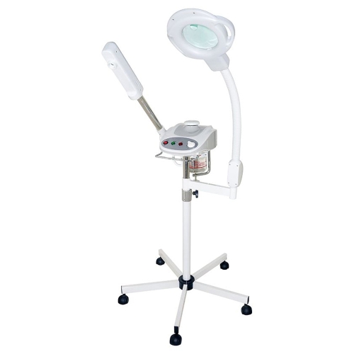 This machine features a new contemporary design. Perfect for creating a sleek and relaxing environment. Combo package includes a flexible arm 5x Diopter Magnifying lens.