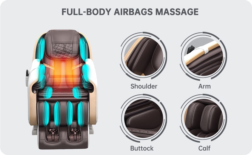 Unique air pressure system. The shoulders, waist, arms, legs, and feet are all equipped with airbags. By inflating and deflating, provide full body massage experience, help to relax the body, and relieve fatigue.