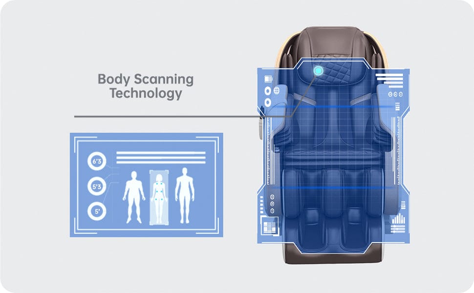 Body scanning technology ensures that the massage rollers hit all of your unique pressure points by scanning your body to detect your body size and adjusting the position of the rollers.