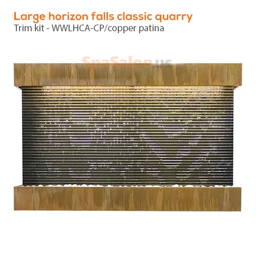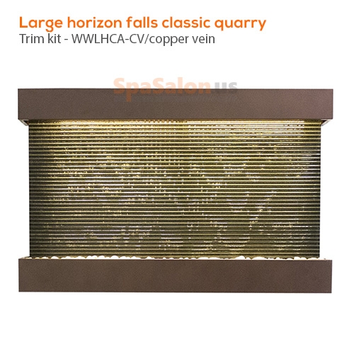This Classic Quarry large Horizon Falls indoor wall water fountain will instantly become the crowning jewel of any room you put it in, whether it's in your home or office. When you look at this fountain your eye will be naturally drawn to the movement of the water over the textured Absolute Black Granite to the awaiting polished cream white river rocks below. Amazing positive and negative water patterns created by the deeply textured face captivates viewers, the calming effect of this sight and sound cannot be overstated.