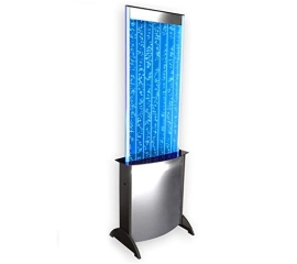 Large floor standing LED bubble wall Enter your own personal utopia where LED lighted bubbles stream through a panel of water. Adjust the color, brightness and pattern of the lighting to create your desired atmosphere. This bubble wall is composed of high quality, light-weight aluminum and...