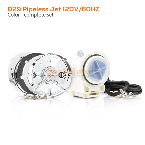 The D29 Spa Jet is crafted with durable materials to withstand heavy use, and skillfully designed to deliver powerful jet flow angled at precisely 29 degrees, turning the ordinary water in your pedicure spa into a soothing, bubbly whirlpool soak. This complete set includes all parts needed to install the jet in your pedicure spa, including motor, electrical cord, and face cap set. This advanced spa jet is pipeless, making it more hygienic and easier to clean than older models. The D29 Jet is compatible with most pedicure spas and will stand the test of time while delivering pleasurable, reliable jet flow.
